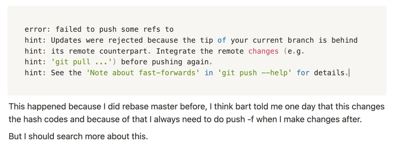 Since I was documenting all of my git struggles, I will give you a glimpse at what my notion notes were looking like in my second week here 😂: